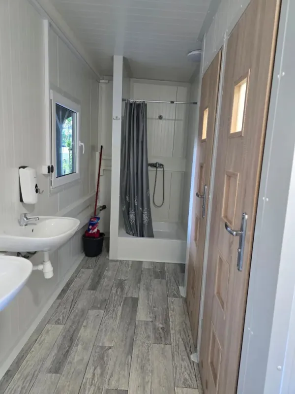 - kitchen with all equipment (large fridge, induction hob, set of dishes, pots, glasses and goblets)